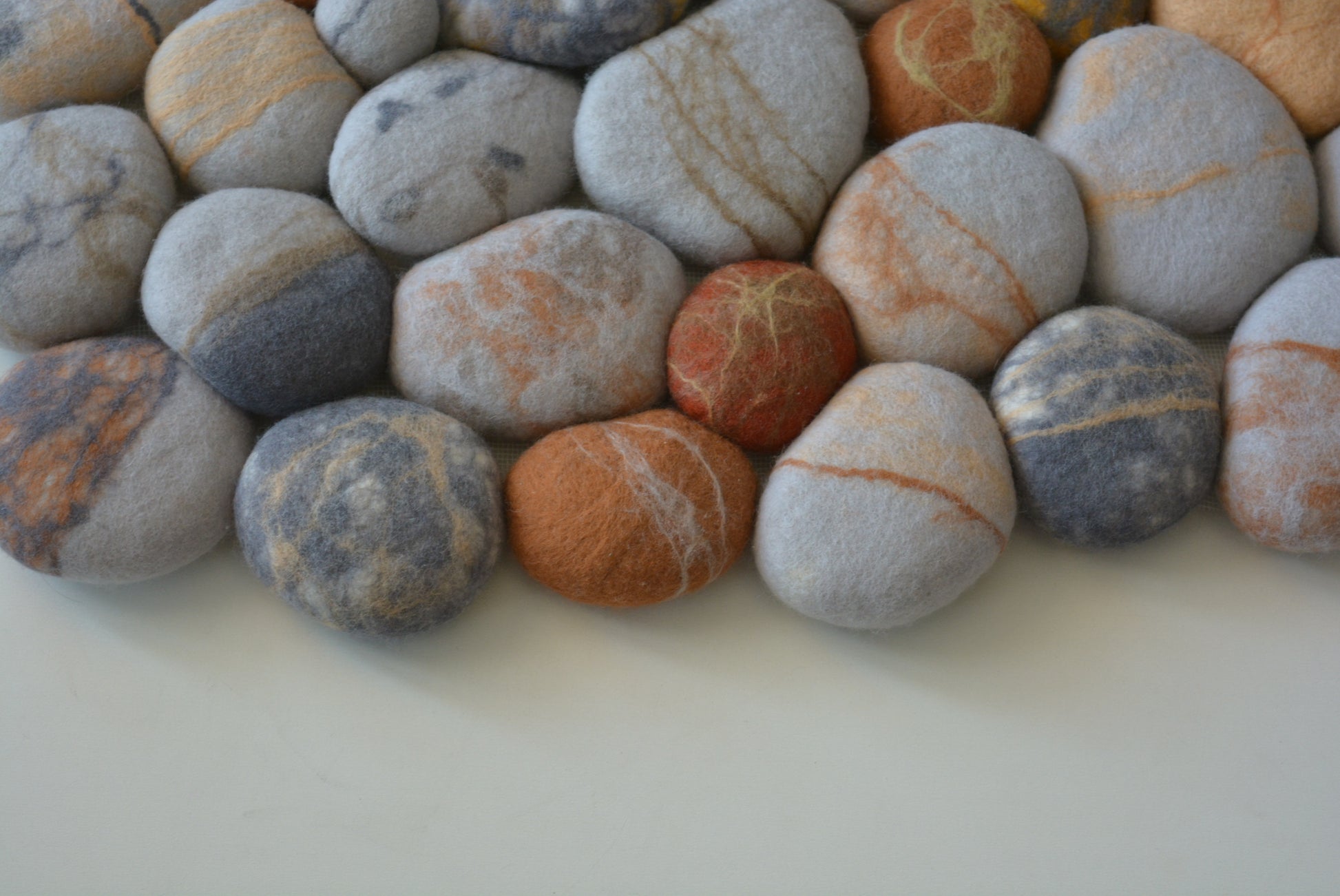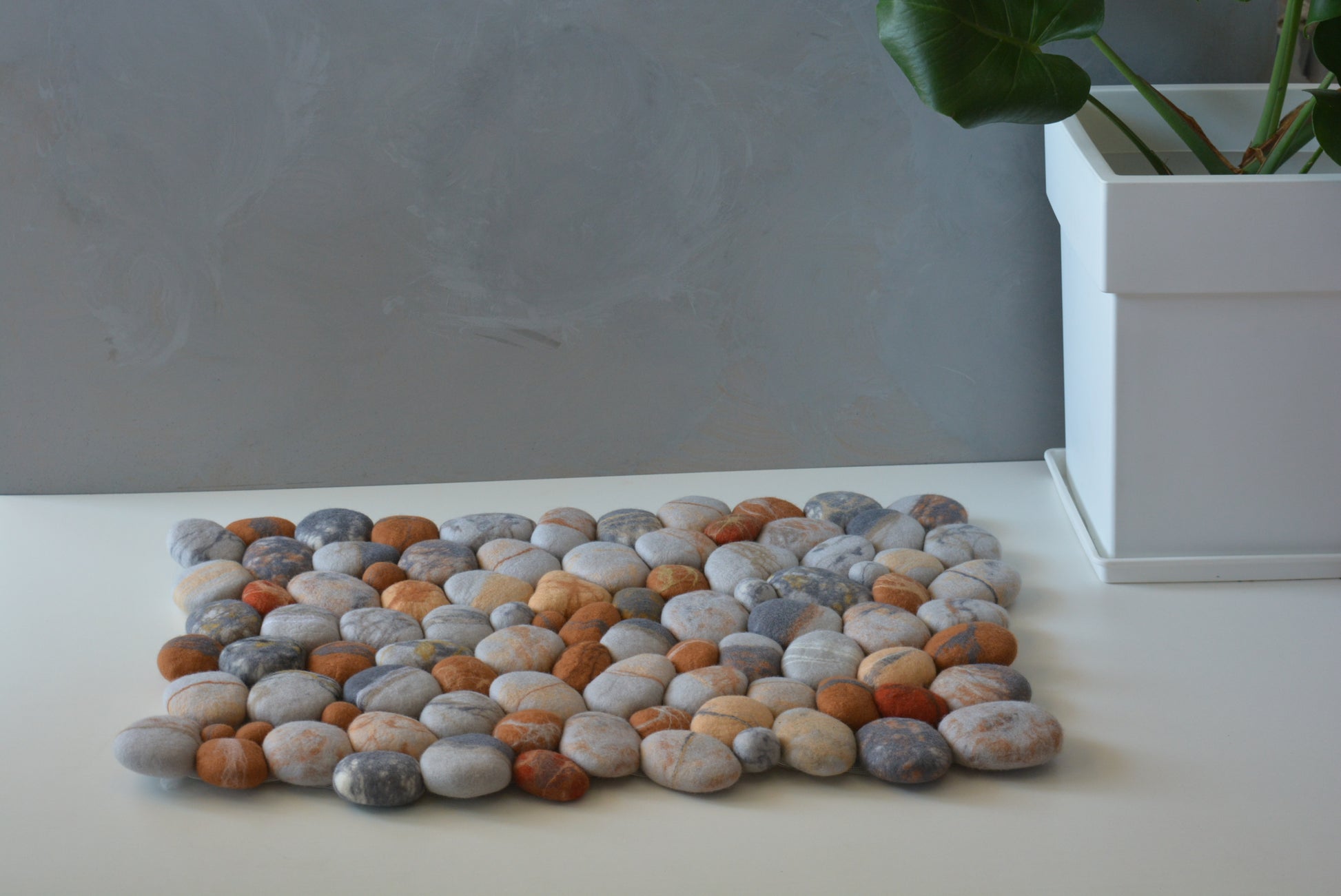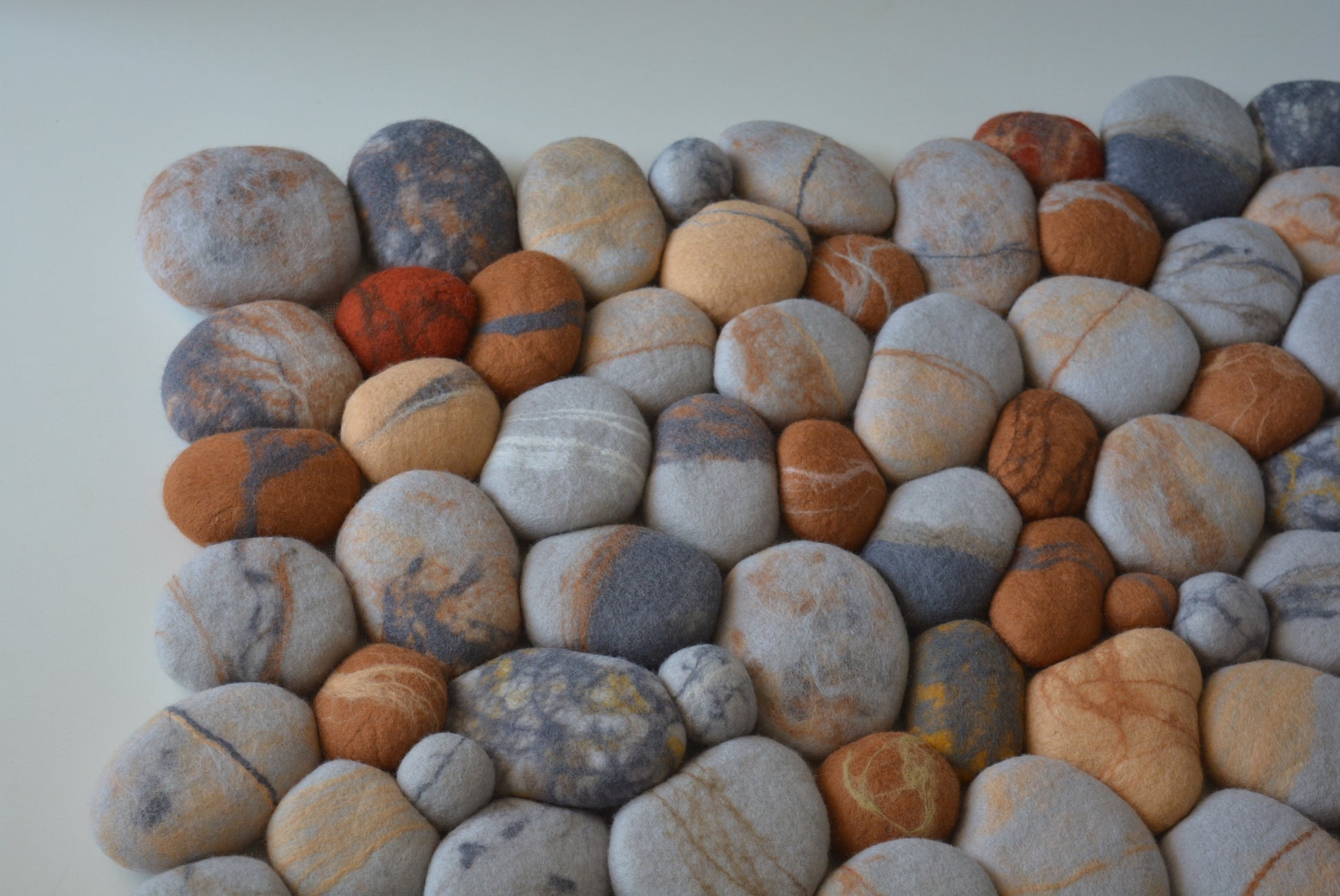 You can chose the shade of stones from our listings at the "felt stone rug" section in our shop, or you can send us picture of you interior, so we customize it to fix perfectly at the place you would prefer to use it. Or you can just send us any photo shot of stones taken in the nature, or finding in the web. We can create what you like the most.